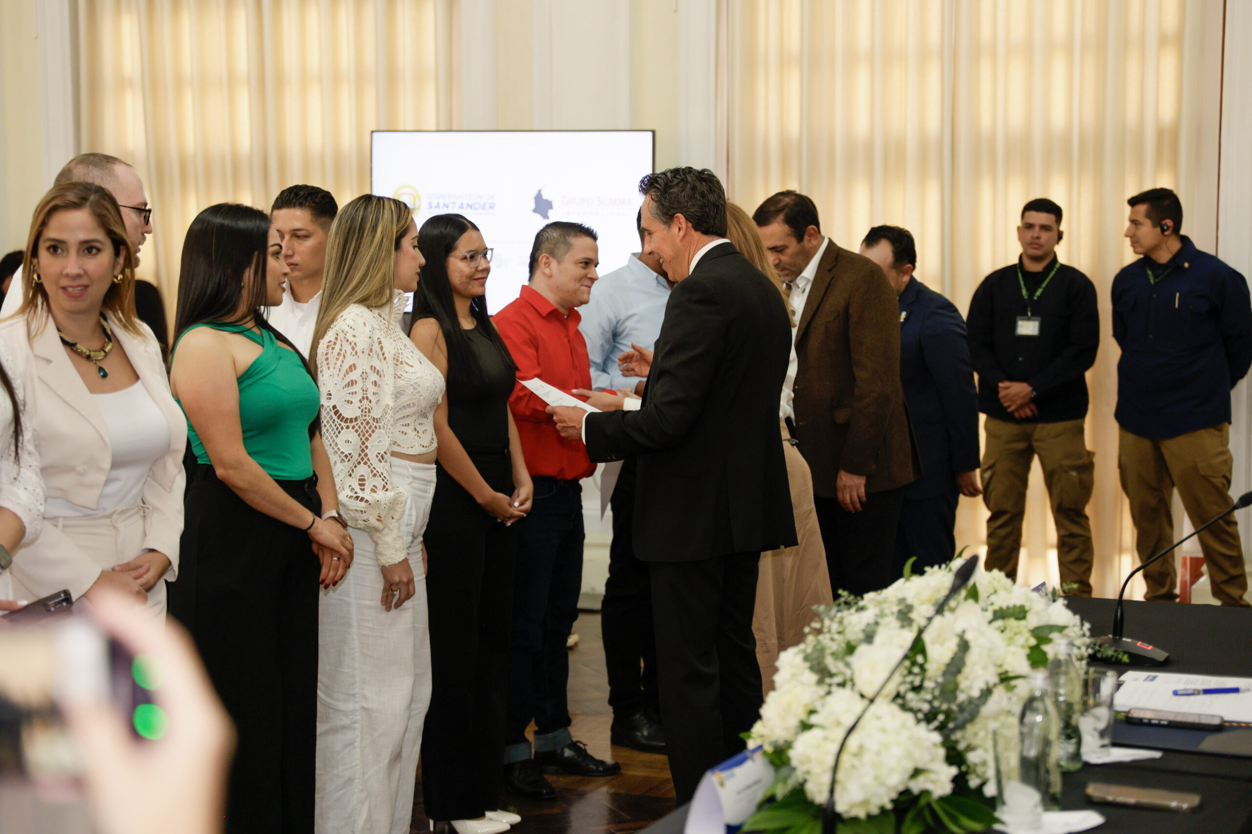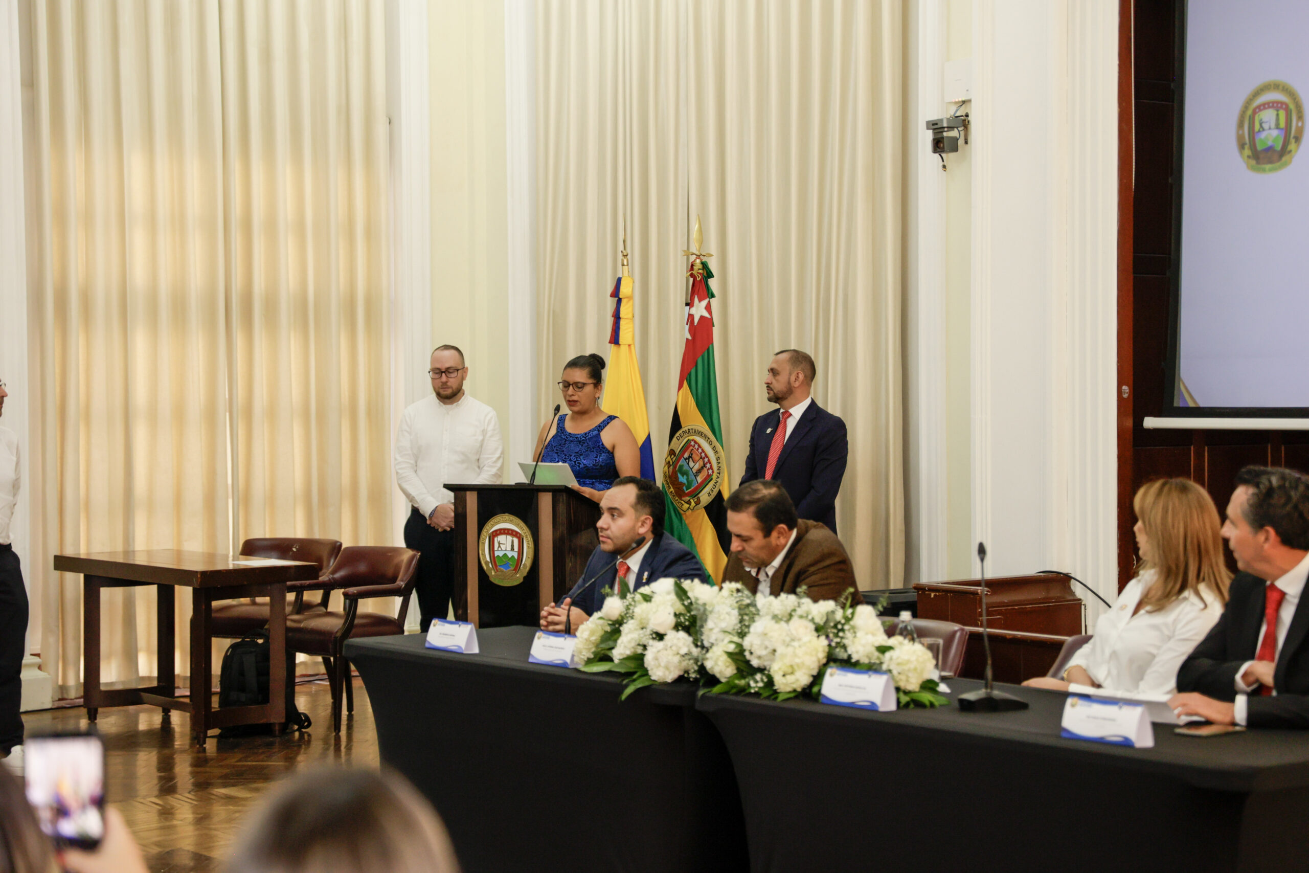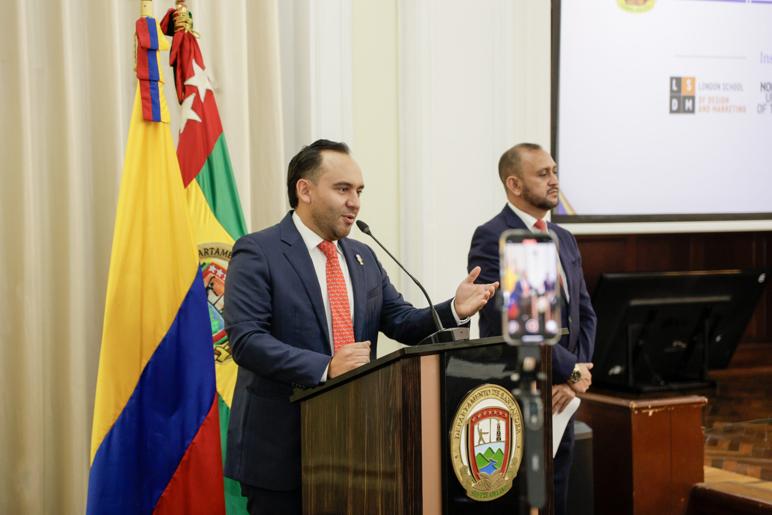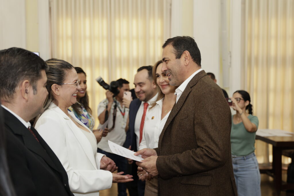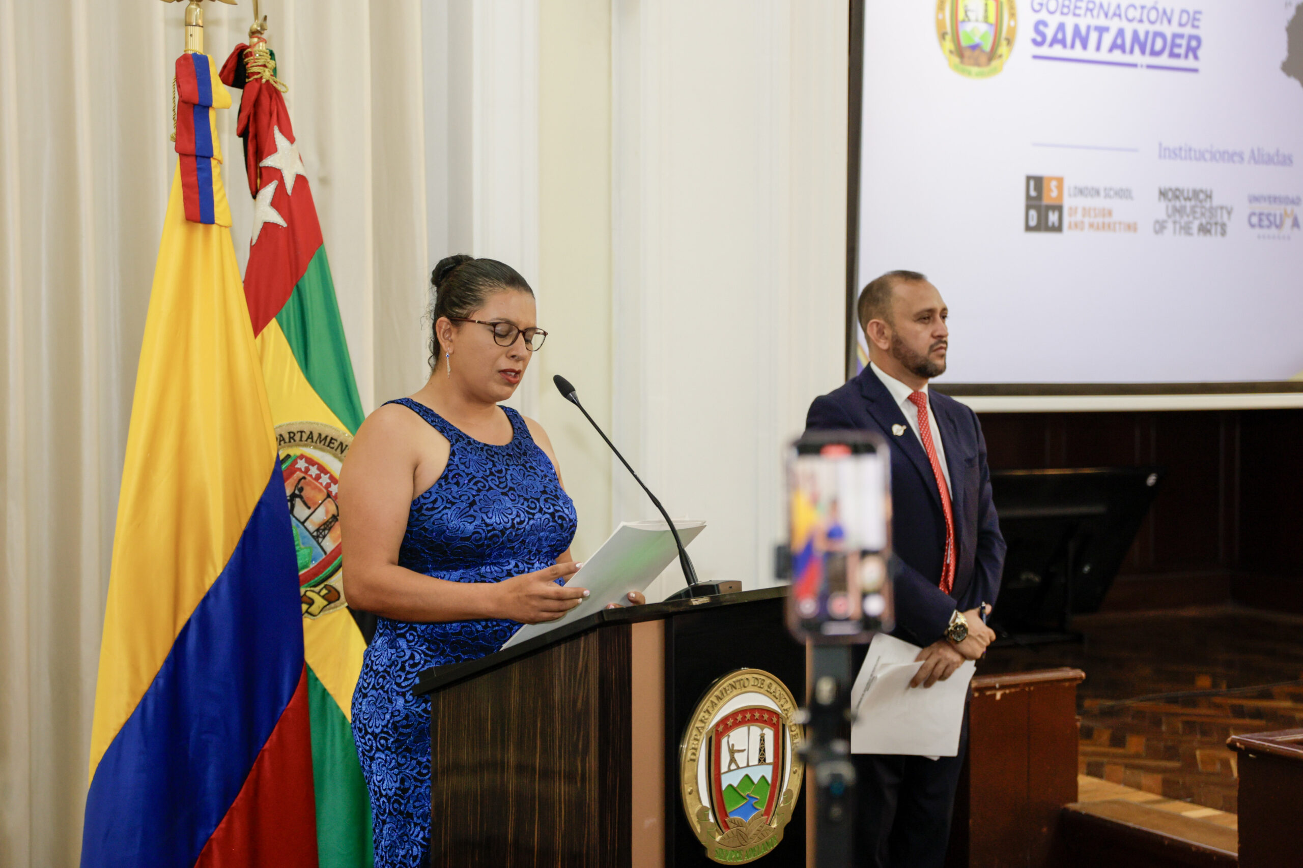 Ceremonia de entrega de Becas al Mérito Santandereano junto al Gobernador Juvenal Díaz Mateus.